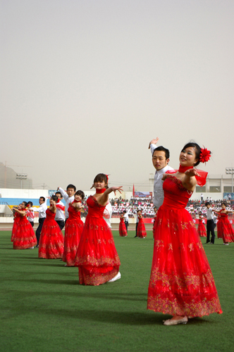 医学院学生李小龙和体育学院教师景会峰分别作为运动员和裁判员代表宣了誓。宣誓完毕后,开幕式进行了腰鼓、交际舞、歌伴舞、广播体操、秧歌等大型文体表演。