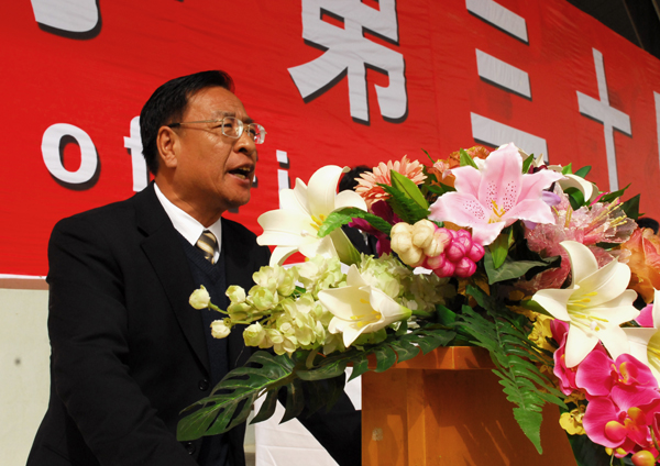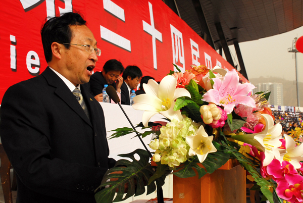 刘建德书记宣布运动会比赛开始。(兰天峨 摄)