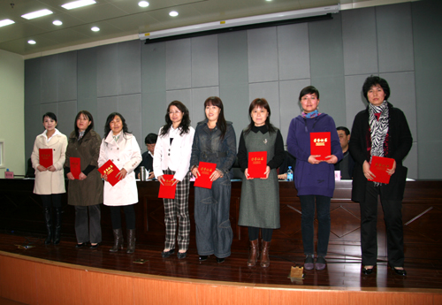 随后,张威虎副校长宣读了学校关于表彰了我校2009年度人口与计划生育工作先进个人的决定,刘晓淼、张旭方、成铭、王玉清、段熔、拓春黎、宋延荣、薛瑞芸等8位同志受到表彰,廉振民校长、张威虎副校长和屈强局长等向受到表彰的先进个人颁了奖。