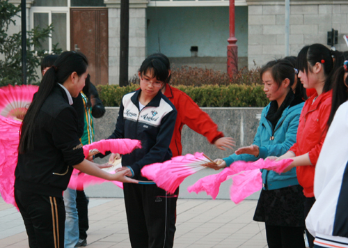 在为期4天的培训中,“陕北秧歌大家学”采取即时报名的方式,针对现场学生在舞蹈基础上的差异,采用教练台上示范,单个错误动作纠正,分小组跟学等灵活新颖的培训形式,内容包括陕北秧歌的基本步伐、道具的基本使用、动作的协调、男女之间的配合及队形的变换等。本次“陕北秧歌大家学”活动由鲁迅艺术学院教师高媛担任教练,郭春江等5位学生担任副教练,前后有近千余人次参加了培训。