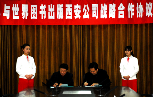 本网讯 4月1日上午,我校与世界图书出版西安公司战略合作协议签字仪式在图书馆二楼会议室举行,我校党委书记刘建德、校长廉振民、副校长马海平,世界图书出版西安公司总经理张栓才、副总经理薛春民、教育出版中心主任李志刚,以及我校校办、科技处、社科处、图书馆、教材中心、附属医院等单位的负责人和各学院院长等参加了仪式。签字仪式由我校副校长胡俊生主持。