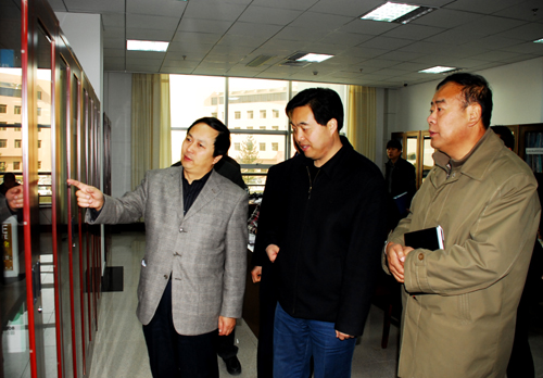 胡俊生副校长向张栓才总经理介绍我校馆藏内容
