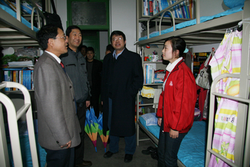 本网讯 2月28日上午,冒着元宵节纷纷洒洒的小雪,党委书记刘建德,校长廉振民,副书记、纪委书记刘庆利,副校长许静洪、张威虎、胡俊生、王延奇,党委委员、党办主任田伏虎,校办主任姚正宽与教务处、学生处、后勤处、保卫处、房产处、基建处等部门的负责同志,分成两组,就开学及新生入校的准备情况等进行了检查。