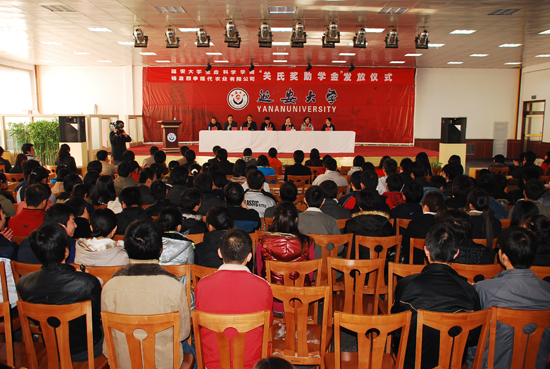 发放仪式上,生科院副院长孙志宏宣读了学校《关于颁发2009年度“关氏奖助学金”的决定》,董超妮等37位同学被评选为2009年度“关氏奖学金”获得者,朱艳等50位同学被评选为“关氏助学金”获得者。随后,高延龙副书记、王颖总经理、我校生科院党委书记靳丽萍、生科院副院长孙志宏、学助中心副主任雷志强和刘建铭先生分别向获得“关氏奖助学金”的学生颁发了奖学金及获奖证书。关氏奖学金获奖学生代表和关氏助学金受资助学生代表先后发了言。