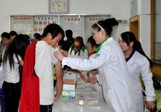 本网讯 为有效做好甲型H1N1流感的防控工作,保证学校的正常教学秩序。我校决定按照“知情、同意、自愿、免费”的原则,为在校学生接种甲型H1N1流感疫苗。自12月15日起至12月17日止,我校积极配合宝塔区疾控中心,为自愿接种流感疫苗的学生进行了统一接种。