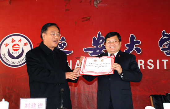 报告会开始前,举行了简短的兼职教授聘任仪式,我校党委书记刘建德向祁玉江书记颁发了聘任其为我校公共管理学院兼职教授的聘书。