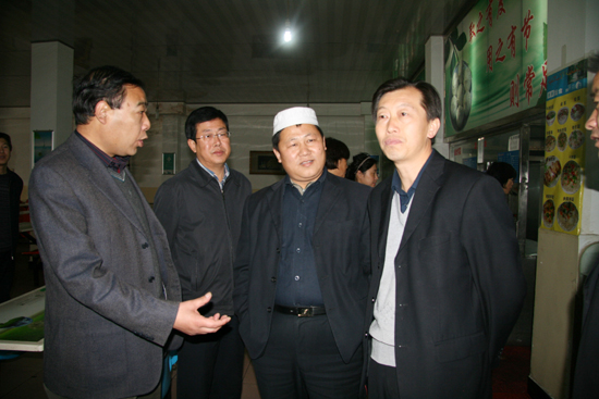 本网讯 10月26日上午,由延安市民族宗教局、食品药品监督管理局、商务局、质量技术监督局、工商局、教育局和宝塔区伊协组成的清真食品生产经营及贯彻落实民族宗教政策情况检查组一行8人,在市民族宗教局副局长张安平的带领下,来我校检查工作。我校党办主任、统战部部长田伏虎及后勤处的有关负责同志接待了检查组一行。