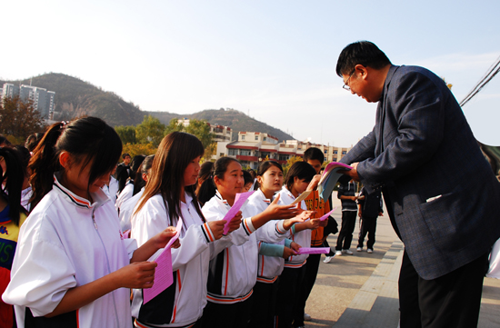 高延龙副书记向学生发放宣传单
