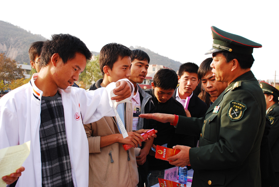 动员会结束后,黄守弟副司令员、陈乾强主任、陈占波部长、范卫东政委和高延龙副书记等向学生们发放了征兵宣传册和宣传单,并就大学生关心的相关问题进行了现场解答。