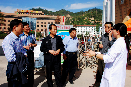 检查中,廉校长要求保卫处要按照新生进校时后勤管理处的测量和检查模式,严格对进入的每个人员进行测体,尤其是外来人员和西安方向出差归来的人员要重点测量,加大对门卫的管理力度;校医院要加强24小时值班制度,对发现的发烧人员进行及时、认真的检查,并做好登记工作。