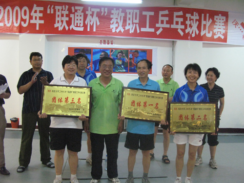 本网讯 由校工会主办,体育学院和教职工乒乓球协会承办的我校2009年“联通杯”教职工乒乓球比赛于7月4日开赛。经过为期两天紧张激烈的比赛,7月5日下午,比赛在怡苑校区教职工活动中心落下帷幕。