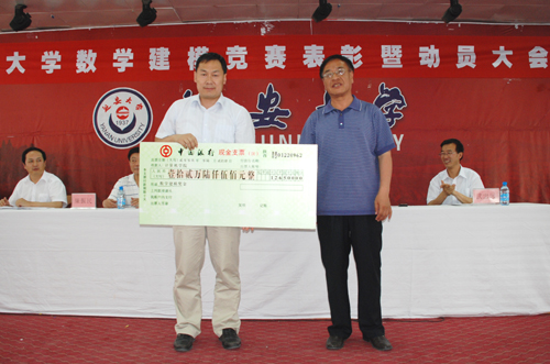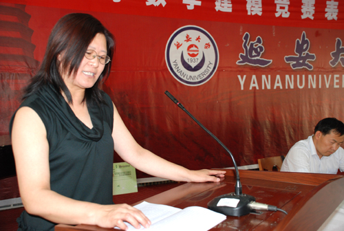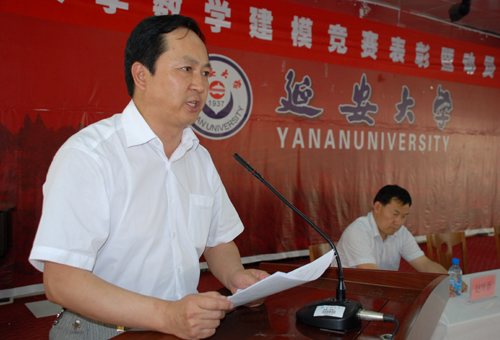 表彰会上,教务处副处长武忠远宣读了《关于表彰我校参加2008年全国大学生数学建模竞赛获奖参赛队的决定》和《关于表彰延安大学第一届大学生数学建模竞赛获奖参赛队的决定》,对在2008年全国大学生数学建模竞赛中,获得全国一等奖1项、二等奖1项和陕西赛区一等奖4项、二等奖1项的我校参赛队员和教练,及在我校第一届大学生数学建模竞赛中获得一、二、三等奖的参赛队伍和获得优秀组织奖的学院进行表彰奖励。计算机学院院长赵华新为获得省级优秀奖、省级二等奖和我校第一届数学建模竞赛成功参赛奖的获奖人员颁了奖,武忠远副处长为获得省级一等奖和我校第一届数学建模竞赛三等奖的获奖人员颁了奖,胡俊生副校长为获得国家二等奖和我校第一届数学建模竞赛二等奖的获奖人员颁了奖,廉振民校长为获得国家一等奖和我校第一届数学建模竞赛一等奖的获奖人员颁了奖,刘建德书记为获得2008年全国大学生数学建模竞赛的获奖参赛队和获得我校第一届数学建模竞赛优秀组织奖的能源学院、财经学院分别颁发了奖金和奖牌。2008年全国大学生数学建模竞赛全国一等奖获得者张娜和计算机学院教师高丽分别作为获奖学生代表和教练组代表发了言,能源学院副院长白亚军作为优秀组织奖的获奖单位代表发了言。
