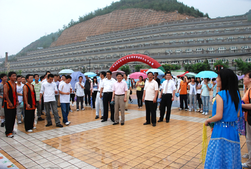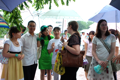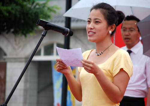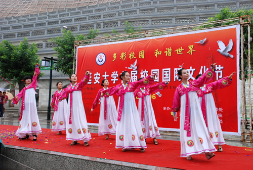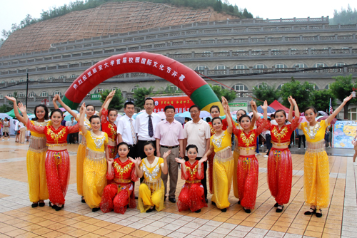 本网讯 6月18日下午,细雨如织,由我校国际交流与合作处、学生处和外国语学院联合主办,主题为“多彩校园,和谐世界”的我校首届校园国际文化节在窑洞广场举行。校党委书记刘建德、校长廉振民、学生处处长韩卿元等应邀出席了开幕式,来自英、美、日的外籍教师及部分留学生及各学院的部分师生参加此次文化节。开幕式由国际交流与合作处处长吴卫东主持。