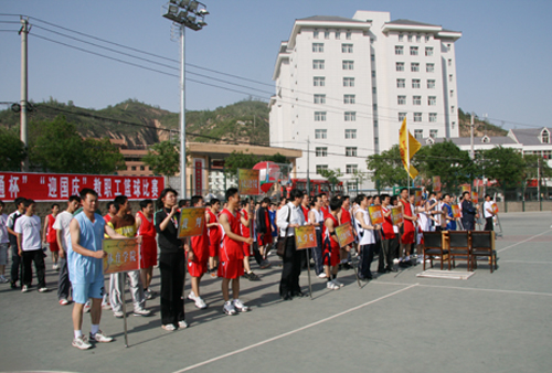本网讯 5月6日下午,我校2009年“联通杯”教职工篮球赛开幕式在校球类运动场举行。来自各基层分会的18支代表队的216名队员参加了开幕式,开幕式由校工会副主席白泽生同志主持。