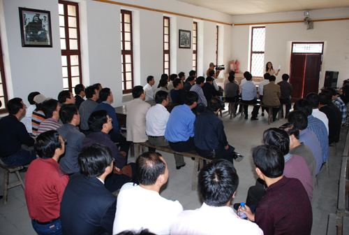 本网讯 4月16日和17日下午,我校处级干部培训班分批先后赴枣园革命旧址、杨家岭革命旧址和我校校史陈列馆,开展学习科学发展观教学实践活动。