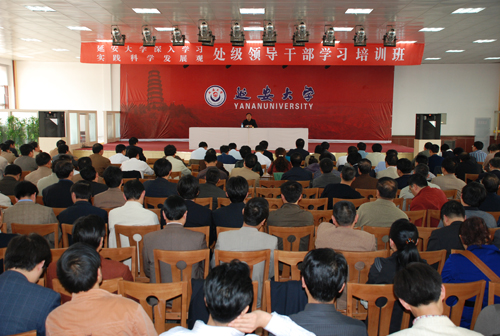 本网讯 4月13日下午,校党委书记刘建德同志在学生活动中心为处级领导干部深入学习实践科学发展观活动培训班作了首场报告。