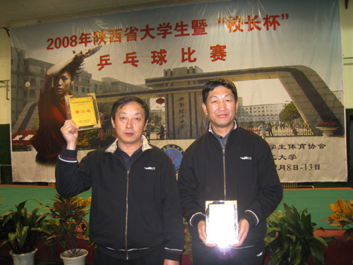 由我校党委书记刘建德,副书记、纪委书记刘庆利,副校长王延奇组成的代表队参加了“校长杯”男子团体、双打和单打3个项目的比赛,并取得男子双打亚军的好成绩,这是我校参加陕西省“校长杯”乒乓球比赛以来获得的最好成绩。