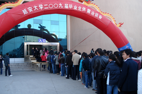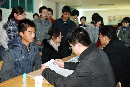 本网讯 11月30日,我校在周扬楼举办了2009届毕业生供需洽谈会,共邀请到41家企事业单位和教育部门参加了招聘,提供就业岗位412个。我校3000多名毕业生参加了洽谈会。