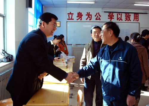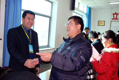 刘建德书记与招聘单位工作人员亲切握手并交谈
