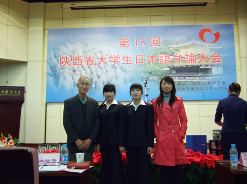 本网讯 10月19日,我校首届日语专业学生郭咪咪、田甜由外事处处长吴卫东带领,参加了由陕西教育国际交流协会和日本财团法人全国日本学士会主办、西安外国语大学承办的第十五届陕西省大学生日语演讲比赛,并获得优秀奖。