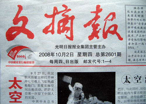 当日《文摘报》报头