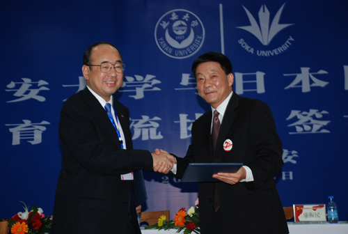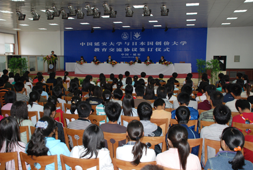 廉校长在致辞中对创价大学及日本友人对延安大学多年来的支持和帮助表示感谢。他希望通过这次交流协议的签订,以“友好、交流、合作、发展”为主题,进一步推动两校间的多领域合作,力争在人才交流和科研合作等方面取得丰硕成果。日本创价大学理事长田代康则代表创价大学致了辞,他希望双方能够共同努力,为培养出肩负中日两国友好关系中人的下一代人才贡献力量。