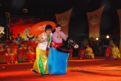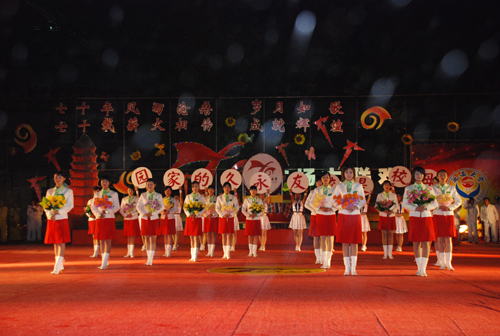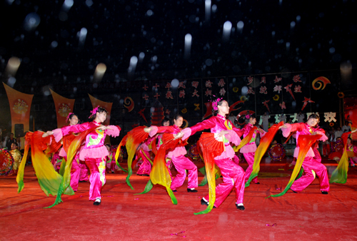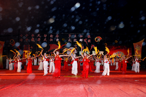 文艺晚会上,由礼仪协会和轮滑协会学生表演的节目拉开了晚会的序幕,100余名陕北民歌合唱队学生为大家演唱了《山丹丹开花红艳艳》、《三十里铺》和《兰花花》等陕北民歌的经典曲目,附属医院女子腰鼓队则为大家演绎了充满激情的安塞腰鼓,数十名文学院学生表演的陕北大秧歌把文艺晚会推向了高潮,观看晚会的新老校友和师生也情不自禁的参与其中,合着鼓点和节拍一同扭起了欢快的秧歌。