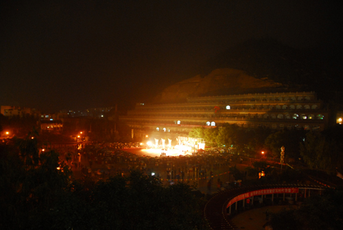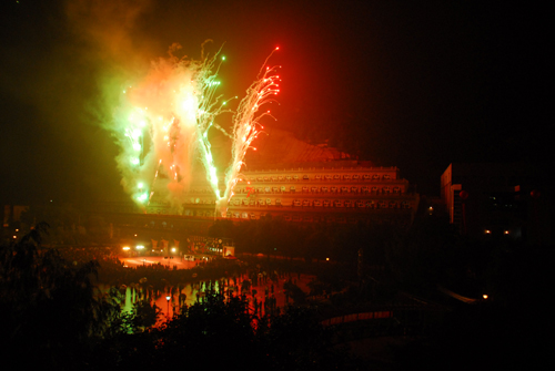 文艺晚会结束后,附属医院为校庆特别准备的焰火晚会在窑洞广场周围举行,朵朵美丽烟花在夜空的绽放,标志着我校建校七十周年校庆活动的圆满结束。