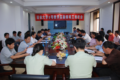 本网讯 7月15日上午,我校在逸夫楼第三会议室召开9号教学实验楼竣工验收会议,校领导刘庆利、张威虎、胡俊生,延安市恒远建筑工程有限公司、陕西省教育建筑设计研究院、西北综合勘察设计院、陕西信达建设监理有限公司、延安市工程质量质检站、延安市规划局规划科和墙改办、延安市消防支队、延安市城建档案馆及我校纪检监察处、审计处、财务处、国资处、医学院、体育学院、后勤处、房产处、基建处等部门的主要负责同志等参加了会议。会议由副校长张威虎同志主持。