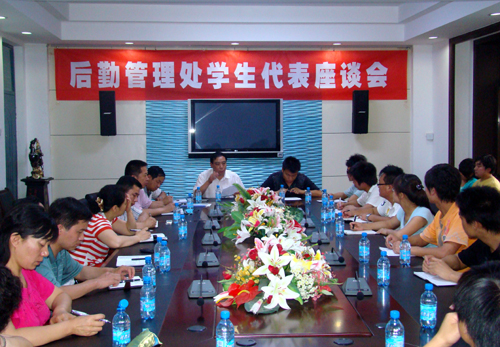本网讯 为了迎接我校第五次党代会的召开,积极开展“加强作风建设,提高服务质量”活动,7月3日晚,学校后勤管理邀请校学生会干部和各学院学生分会干部代表及宿舍管理委员会部分成员代表,在逸夫楼第三会议室召开了学生代表座谈会。