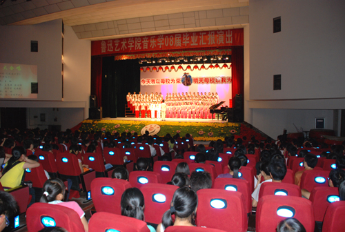 本网讯 6月20日晚,鲁迅艺术学院2008届音乐学专业全体毕业生在学生大礼堂进行了毕业汇报演出,校党委书记刘建德、校长廉振民、党委副书记高延龙、副校长王延奇、教务处处长齐广才及学校部分单位主要负责同志与教育部机关党校第二十四期干部理论进修班全体学员等观看了演出。