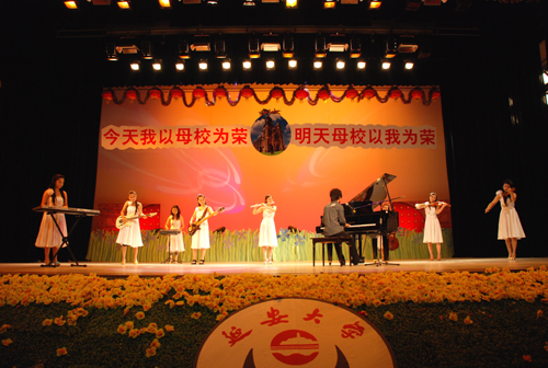 演出丰富多彩,有合唱、独唱、舞蹈、钢琴弹奏等15个节目,内容新颖,风格多样,表达了毕业生对母校深深的眷恋和对老师教诲的不胜感激。