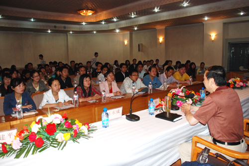 典礼结束后,李田主任为学员们作了首场培训。本次培训班为期两天,由陕西省人才交流服务中心聘请资深的相关专家进行培训,学员由延安大学、延安大学西安创新学院、榆林学院2008年被录用的学生组成。我校共有81名学生被录用。
