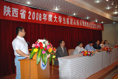 高延龙副书记在致辞中指出,大学生到基层从医从教计划是陕西省政府出台的振兴农村基层人才队伍的重大措施之一。该计划的落实,是贯彻落实科学发展观、构建社会主义和谐社会、建设社会主义新农村的重要举措,此举将缓解陕西省边远艰苦地区农业、医疗卫生、教育事业对人才的急需,解决陕西省农村基层人才匮乏问题,促进高校毕业生就业。被录用的学生将成为基层的重要后备资源,希望学员们认真参加培训学习,走好职业生涯第一步,到基层发挥才智,为我省基层医疗和教育事业做出应有的贡献。
