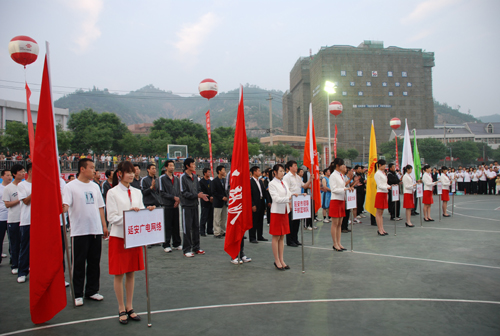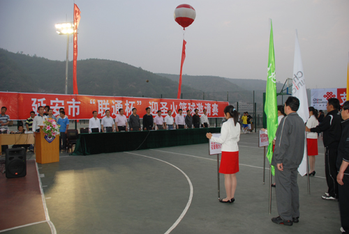 本网讯 5月26日晚,由延安市篮球协会主办、我校体育学院承办的延安市“联通杯”迎圣火篮球邀请赛在我校球类运动场举行,中共延安市委常委、市委副书记王建军,我校校长廉振民,副校长许静洪、张威虎、胡俊生、王延奇等出席了开幕式。开幕式由延安市体育局副局长高强主持。市体育局局长王智致开幕词,胡俊生副校长致欢迎辞,陕西联通延安分公司副书记、工会主席马建立致祝贺辞,郭晓磊和冉晓辉分别作为运动员和裁判员代表宣了誓。王建军副书记宣布比赛开始。延安市领导干部篮球队、陕西联通延安分公司、延安市土地统征管理办公室、中铁二十一局集团、延安广电网络和我校共6支代表队参加了比赛。