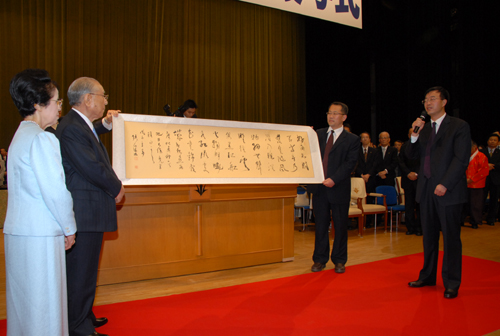 向池田夫妇赠书法作品一幅(由我校组织部长张建林先生创作)