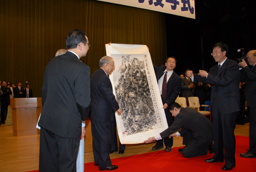 武忠远副处长代表我校向池田大作先生颁授延安大学终身教授证书