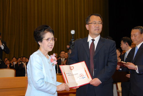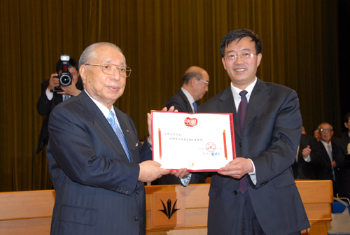 本网讯 日前,我校教务处副处长武忠远与化工学院院长李东升前往日本,向日本著名学者、国际知名社会活动家、国际创价学会会长池田大作先生及其夫人池田香峰子女士颁授了终身教授证书。
