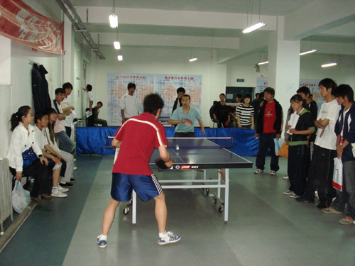 本网讯 5月10日至11日,由学校体育工作委员会主办、体育学院承办的延安大学2008年学生乒乓球锦标赛在怡苑教职工活动中心举行。