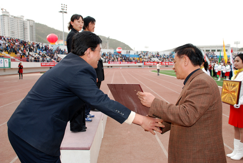 本网讯 经过3天紧张而激烈的赛程,我校第32届田径运动会圆满落下帷幕。4月26日下午,闭幕式在学校体育场举行。体育学院院长魏锦龙宣读了第32届运动会竞赛成绩,体育学院和机关四分会获得教工组团体并列第一名,附属医院分会和机关一分会分别获得第二和第三名;学生组团体第一名被体育学院和西安创新学院并列获得,医学院和信息学院分列二、三位。胡俊生副校长宣读了荣获体育道德风尚奖及优秀裁判员称号的集体和个人名单,附属医院分会、机关一分会和信息学院分会代表队荣获教工组道德风尚奖;人文学院、化工学院、经管学院和能源学院代表队荣获学院组道德风尚奖,顾广新、董志伟、龚丹等15名学生裁判被评为优秀裁判员。