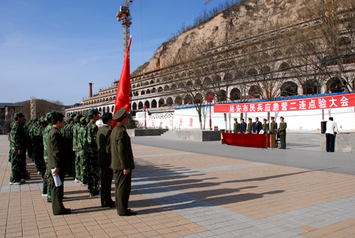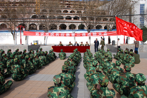 延安市宝塔区人民武装部部长宣布了延安市民兵应急营二连的编组和干部任职命令,延安市民兵应急营二连由延安大学文学院2007级120名学生组成,隶属于延安市预备役二团,连长由延安大学武装部部长王延海担任,指导员为文学院党委副书记吕达,副连长刘鑫,副指导员陈健平。随后,副连长刘鑫呼点了二连人员名单,二连民兵代表侯幸子带领全体民兵宣了誓,连长王延海总结部署了二连的工作,副指导员陈健平宣读了民兵活动制度和民兵工作制度,二连民兵代表李丹代表全体民兵表了决心。