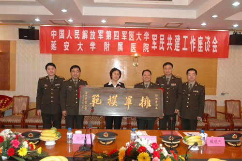 1992年2月,我校附属医院与中国人民解放军第四军医大学正式结为军民共建对子。从此双方建立了深厚友谊,在“同呼吸、共命运、心连心”的精神感召下,16年来,双方继承和发扬延安时期双拥工作的光荣传统,本着“双向服务、互惠互利、互办实事、技术共有、信息共享”的原则,以业务建设为主要内容,充分发挥各自的优势,促进双方单位的整体建设。在第四军医大学的多方帮助和无私援助下,附属医院在基础建设、技术水平、科学管理等方面都有了长足的发展和进步,特别是在技术进步方面,通过第四军医大学各种形式的传帮带,附属医院的医疗技术水平不断得到提高和发展,可完成的技术项目在陕北可以说独树一帜,技术力量十分雄厚,为陕北人民的健康事业做出了极大的贡献。老百姓感慨的说第四军医大学把延大附院培养成一支不走的医疗队,在家门口就能享受高质量的医疗服务。
