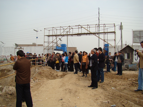 在施工现场,西安市宏峰实业有限公司聂总经理对整个小区的规划情况进行了详细的介绍,并耐心细致地回答了每位职工提出的问题。