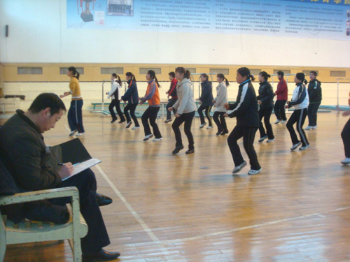 本网讯 3月3日开学的第一天。做为从事体育专业教学工作多年的副校长王延奇心系体育学院建设,一大早就来到体育学院,在体育学院党委书记舒永安、副院长宗有智的陪同下,检查了体育场、球类运动中心、篮球场等场所的开学准备情况。随后,王副校长来到学校体操馆,听取了体育学院教师张智颖为体育专业学生教授的《健美操》专修课。王副校长对张智颖的教学组织和教学效果予以了肯定。课间,王副校长和上课的学生们进行了交谈,就高校体育专业课改革、亿万阳光健身活动、体育生综合素质的提高、就业等问题谈了自己的看法。