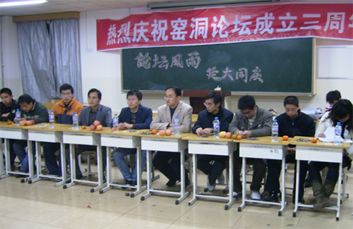 会上,窑洞论坛站长胡毅同学致了欢迎词,副站长雷毅做了2007年窑洞论坛工作报告,副站长郝刚同学宣读了2007年受表彰的优秀站务工作者。