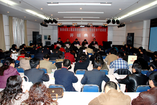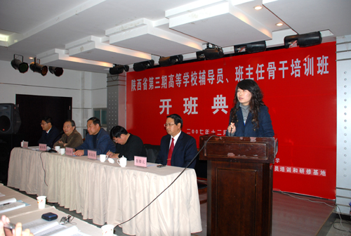 本网讯 12月10日上午,陕西省第三期高校辅导员班主任骨干培训班开班典礼在我校学术活动中心举行,来自全省79所高等学校的88名学员将在这里参加为期一个星期的培训。我校党委副书记高延龙在典礼上致了辞,省教育厅学生处处长张长保和我校学生处处长、教育部延安大学高等学校辅导员班主任培训与研修基地办公室副主任、陕西省第三期高校辅导员班主任骨干培训班班主任韩卿元先后讲了话,培训班学员代表发了言。典礼由省教育厅学生处调研员徐东初主持。
