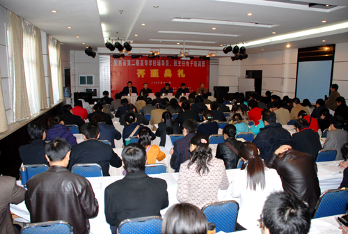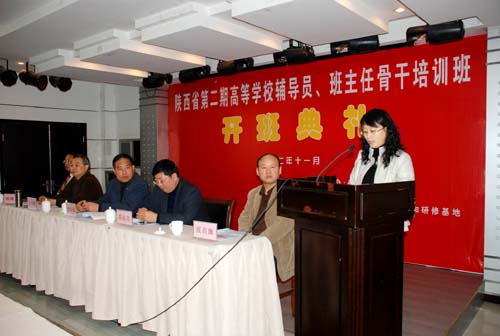 根据教育部和陕西省教育厅《关于加强高校辅导员班主任队伍建设的意见》和2006至2010年辅导员班主任培训方案,陕西省决定今年拟将举办4期高校辅导员班主任骨干培训班,每期培训人数为100名。第一期已于11月4日至10在陕西师范大学举办,今天在我校开班的是第二期,本期培训班共有来自省内87所高校的94名学员参加为期一个星期的培训。