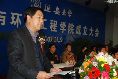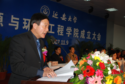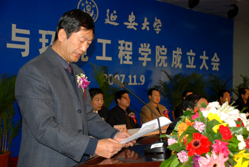 高春义副市长在讲话中代表延安市委、延安市人民政府表示了热烈的祝贺。他指出,延安大学成立能源与环境工程学院,顺应了地方经济建设的需要,必将为延安的能源开发和经济社会发展提供有力支持。高副市长希望我校能抓住机遇,加快发展,把这个学院办出效益,办出特色,为陕北经济的腾飞提供人才、信息、技术支持。