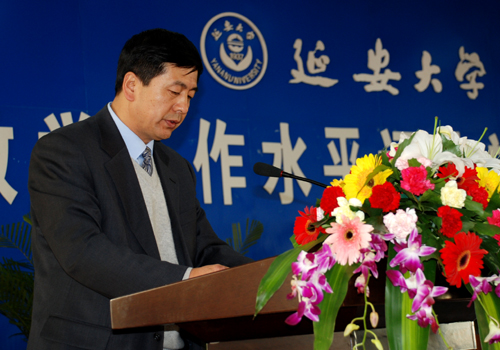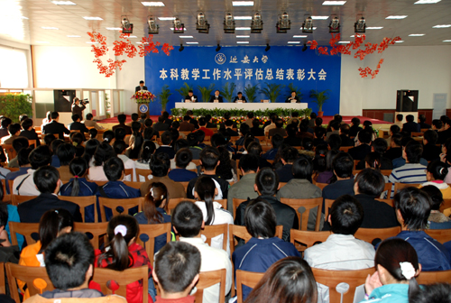 党委副书记高延龙宣读了《延安大学关于巩固评建成果,建立长效机制,进一步提高本科教学工作水平的实施意见》。意见指出,教育部对我校进行的本科教学工作水平评估专家组进校考察评估已经结束,但我校的评建整改任务依然艰巨。按照“以评促建、以评促改、以评促管、评建结合、重在建设”的方针,为了巩固评建成果,建立长效机制,进一步提高本科教学工作水平,经学校研究提出如下意见:一要牢固确立人才培养是学校的根本任务、人才培养质量是学校的生命线、本科教学工作在学校工作中的中心地位的观念;二要继续加大师资队伍建设力度,发挥教师在提高教学质量中的重要作用;三要继续加大教学投入,切实改善办学条件;四要适应地方经济社会发展需要,进一步加强学科专业建设;五要继续加强教学质量监控,构建高效有序的教学质量保障体系;六要继续提高教学管理人员综合素质,加强教学管理工作;七要继续加强科研工作,进一步提高科研促进教学的质量;八要继续深化教学改革,进一步提高本科教育教学质量;九要继续强化实践育人理念,加强实践教学工作,提高学生的创新意识和能力;十要按照育人为本、德育为先的方针,推进素质教育,促进学生全面发展。