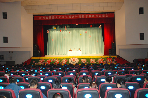 本网讯 为贯彻落实《陕西省“十一五”期间农村基层人才队伍振兴计划》和《陕西省“大学生到农村基层从医从教助学金”实施办法》,做好2007年“大学生到农村基层从医从教助学金”申报工作,10月26日下午四点,陕西省毕业生就业指导服务中心在我校礼堂举办陕西省农村基层人才振兴计划助学金项目说明会,中国西安人才市场、陕西省人才交流服务中心毕业生就业工作部部长姚亚锋、主管杜直前老师出席说明会并解答了学生的提问。会议由我校毕业生就业指导服务中心主任马建平主持。
